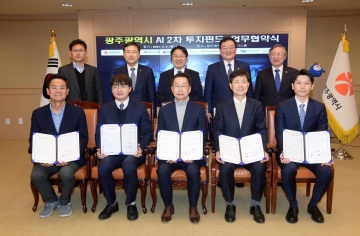 광주광역시(시장 강기정)는 4일 오후 시청 비즈니스룸에서 북구청, 광주은행, 광주테크노파크, 5개 펀드 운용사들과 ‘인공지능(AI) 2차 투자펀드 업무협약’을 체결했다.