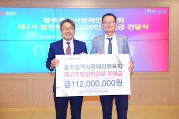 광주시장애인체육회 제2기 발전위원회는 장애인체육의 경쟁력 강화를 위해 구성된 민간 후원 조직으로, 지역 기업과 일반 후원인 100명이 자발적으로 100만원씩 후원금을 모아 총 1억1200만원을 조성, 이날 후원금을 전달했다.